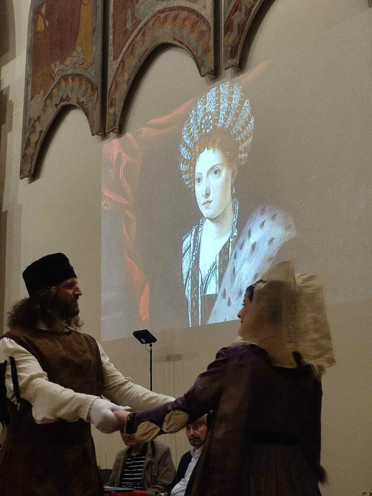 La Direttrice delle Gallerie Estensi, Alessandra Necci, ci ha ampiamente descritto il personaggio di Isabella e alcuni aspetti della sua vita a Ferrara ed a Mantova. Nicola Badolato (Università di Bologna) e Guillaume Bernardi (York University di Toronto) hanno approfondito i legami di Isabella con la musica e l’arte in generale.