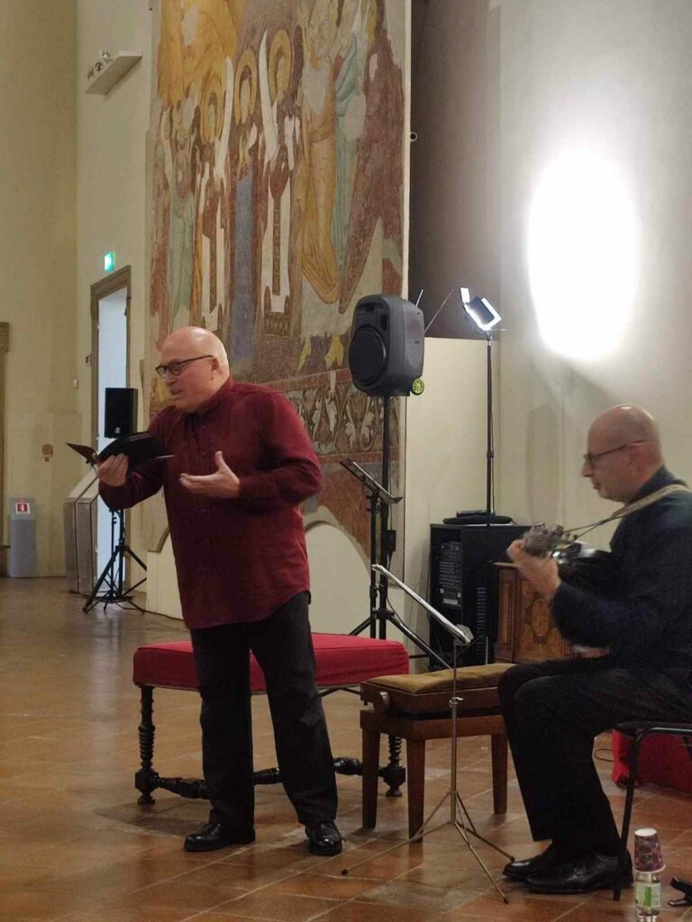 Nella seconda parte del programma, la splendida voce di Marco Beasley ed il liuto di Franco Pavan, hanno incantato il folto pubblico con arie, frottole e madrigali del primo ‘500 italiano. Marco Beasley, scivolando tra italiano ed inglese, ci ha regalato una coinvolgente guida all’ascolto facendo apprezzare e comprendere ancora di più i testi dei brani musicali.